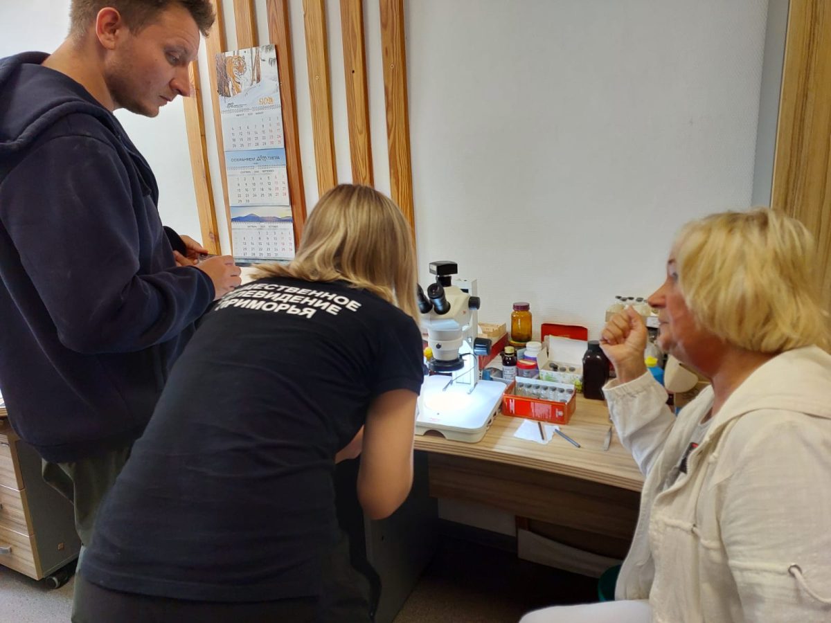 На каждом колечке, даже маленьком, есть буквенно-цифровой код и слово MOSKWA: все птицы, окольцованные в России, «приписаны» к столице нашей Родины. А вот инструктор по горно-пешему туризму Анна Матрушина сама прилетела из Москвы как волонтер на целых два месяца: «Искала вакансии: куда можно поехать летом поволонтёрить. Мне было интересно пообщаться с птицами. И первым на мой запрос откликнулся Сихотэ-Алинский заповедник. Ожидала, что перезагружусь от работы, отдохну от людей. Что познакомлюсь с новыми видами птиц, ведь я начинающий bird watcher, то есть наблюдатель за птицами. Они же потомки динозавров! Когда достаём из сети синицу, у них лапки как у древних велоцирапторов, и это прям завораживает!»